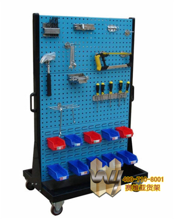 物料整理架是由方孔掛板、百頁掛板、背掛零件盒、棚板、各類掛鉤和底座等組成,廣泛應(yīng)用于車間的生產(chǎn)、裝配、維修工位,也廣泛應(yīng)用于倉庫,存放多品種少量 的小型物料和工具。物料整理架結(jié)合背掛零件盒及多用途的掛鉤配件,不但適合各種類型的物料整理,更適合小型物料工具、零件及各種異型物品的保管分類,充分 有效的運(yùn)用空間。根據(jù)不同的要求可分為移動型、獨(dú)立型、連接型。物料整理架從功能上可以分成移動式物料整理架和固定式物料整理架;從結(jié)構(gòu)設(shè)計上又能分為單 面物料整理架和雙面物料整理架。賽維亞金屬制品有限公司所生產(chǎn)的移動式雙面物料整理架規(guī)為:L910*W560*H1560,可以安裝3塊掛板。掛板分為方孔掛板和百葉掛板,方孔掛板配合掛鉤是用來存放工具,百葉掛板配合掛板零件盒放置小零件;加裝的3塊掛板可以根據(jù)客戶的需求來設(shè)計。